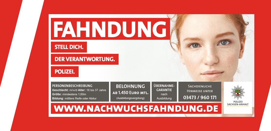 Es gibt viele gute Gründe, bei der Polizei des Landes Sachsen-Anhalt zu arbeiten! Wichtige Informationen zur Bewerbung stehen auf nachwuchsfahndung.de. Alle Details gibt es natürlich auch direkt bei der Fachhochschule Polizei.