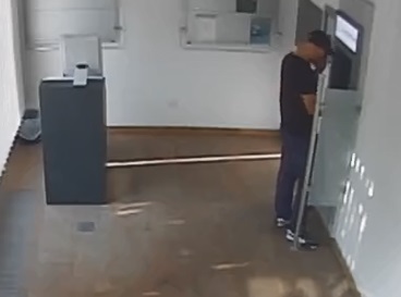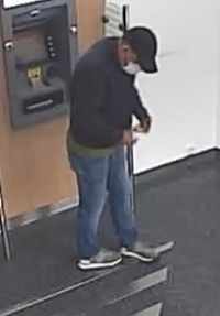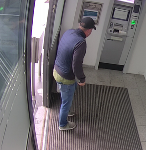 Das vorliegende Bildmaterial zeigt den unbekannten männlichen Täter bei Geldabhebungen am Geldautomaten.